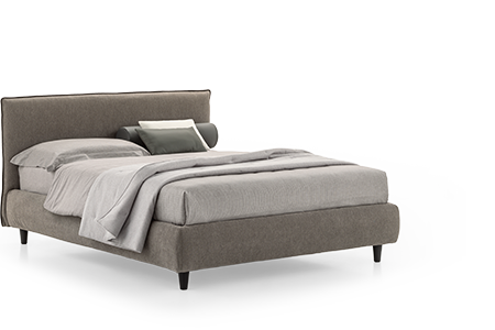 Una testata morbida, ma di spessore. Oltre al rivestimento, anche il bordino a contrasto è un dettaglio da personalizzare. Un letto matrimoniale semplicemente elegante.